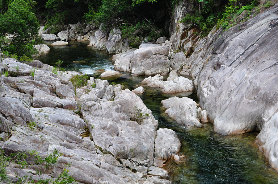 Drive south on the Innisfail road. The gorge turn off is on the right 5km past the Mulgrave River bridge at Gordonvale. Drive to the car park at the end of the road. Follow the concreted track up the valley for about 3km until you reach the gate. Make your way down to the creek and pool on the left.